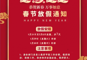 依据国家乐玩(中国)元旦放假的相关规定,1月1日为元旦节,公司定于1月1日放假1天,1月2日星期四正常上班,请各部门安排好各自工作,值日生注意检查关闭电源并锁好门窗。放假期间注意交通安全!祝福大家新年快乐!